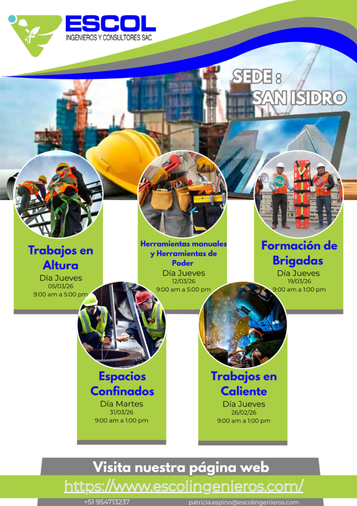 Ofrecemos capacitaciones en seguridad y salud ocupacional, incluyendo uso de equipo de protección personal, gestión de riesgos y manejo de emergencias. Nuestros programas están diseñados para cubrir diferentes sectores, desde la construcción hasta la industria minera y manufacturera.